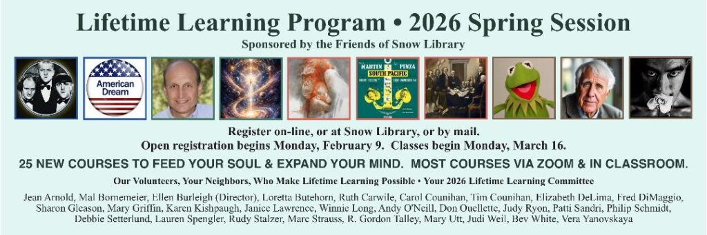 Welcome to the Lifetime Learning Program sponsored by the Friends of Snow Library.